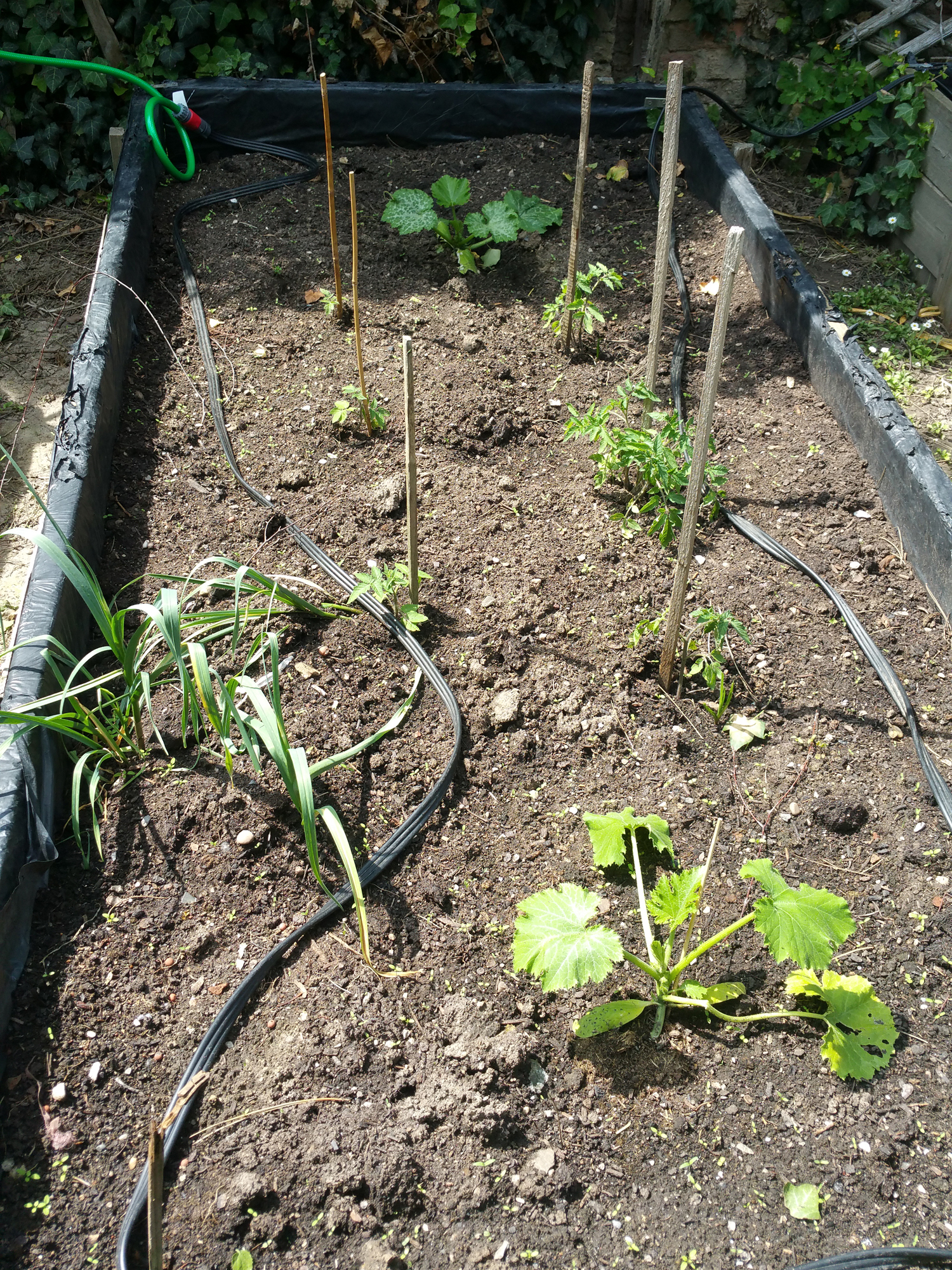 Wir haben alle Hochbeete ausgesetzt und die Bewässerungsanlage aufgebaut, aber seht selbst hier ein kleiner Überblick für euch: